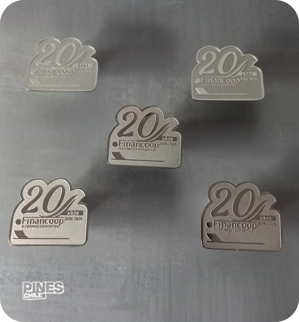 Estos pines metálicos personalizados en Chile se usan mucho en ropa corporativa, eventos y reconocimientos. Además, pueden producirse al por mayor, manteniendo buena calidad. Las piochas metálicas personalizadas con forma especial ofrecen mayor impacto visual y refuerzan la identidad de marca.