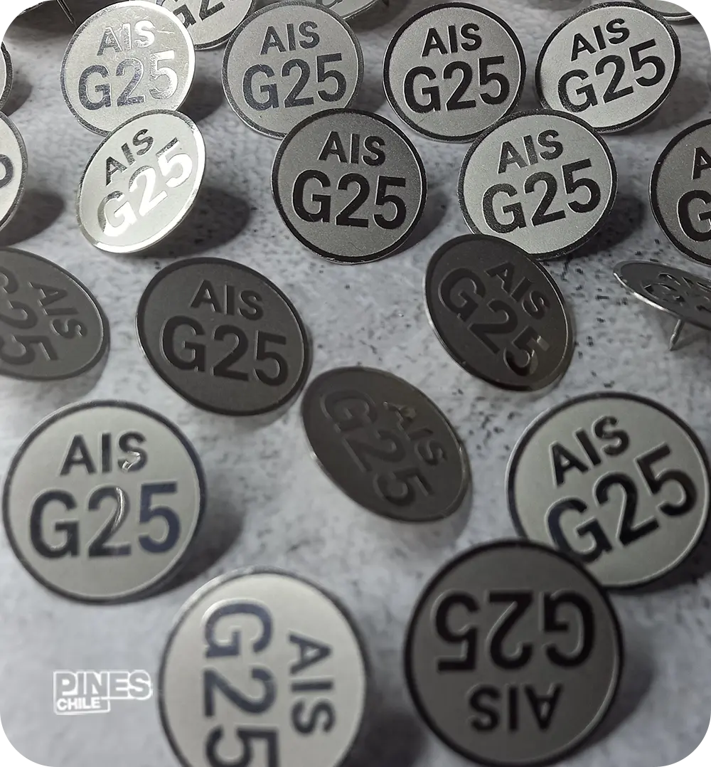 El pedido mínimo es de 25 unidades. Esta cantidad permite producir pines metálicos personalizados con buena calidad y un precio equilibrado, tanto para empresas como para instituciones.